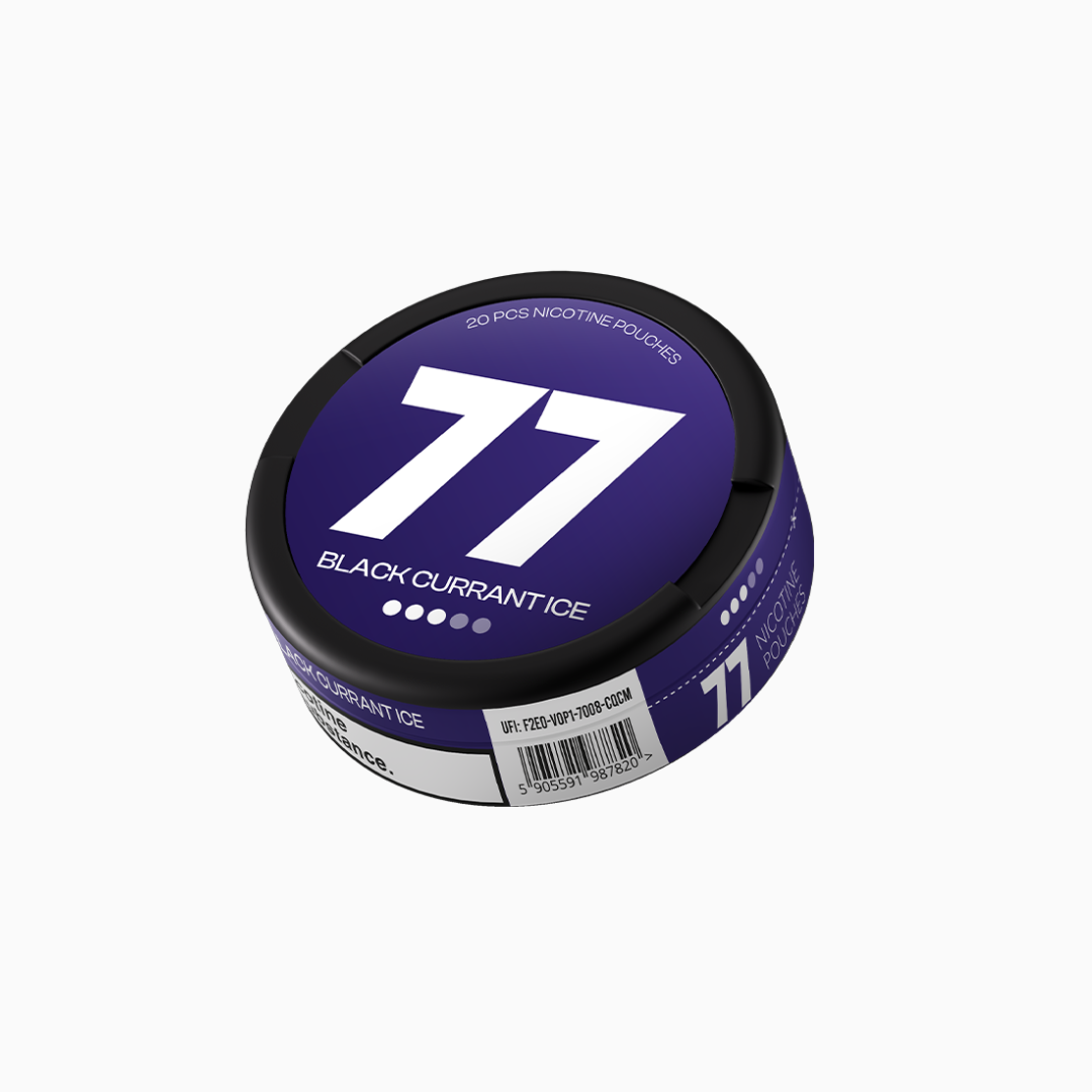 Experience the bold and refreshing taste of 77 Black Currant Ice pouches. These slim pouches combine rich blackcurrant sweetness with a cooling icy twist for a smooth and invigorating experience.