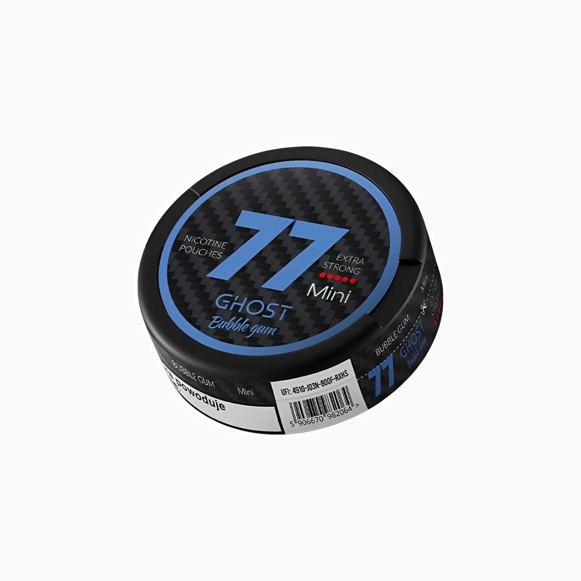 77 GHOST Mini Bubble Gum is delivered with an intense nicotine hit and the sweet taste of bubble gum. Small but powerful, it’s the perfect choice for those seeking a strong experience in a discreet mini pouch.