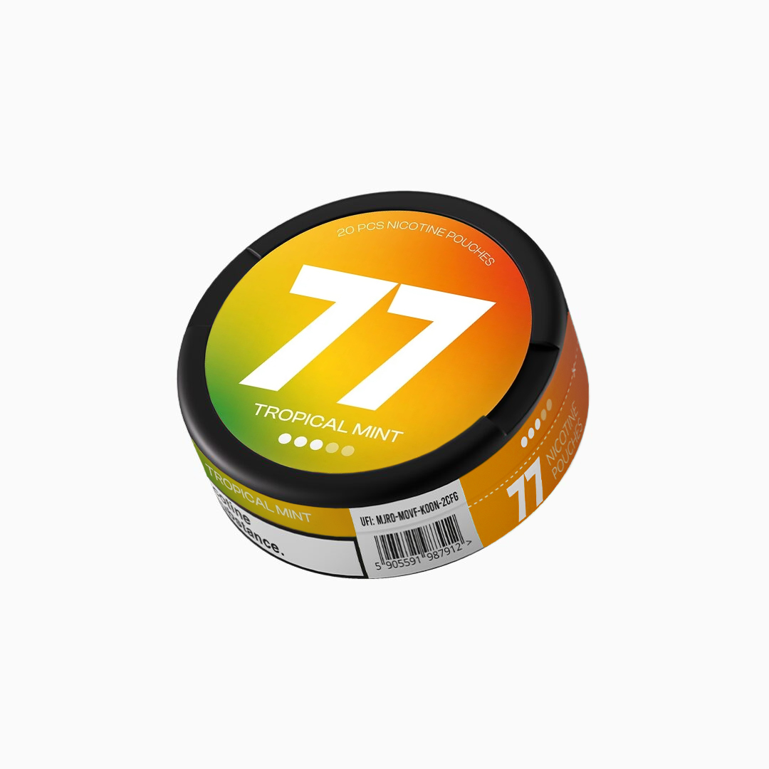 Tropical Mint nicotine pouches by 77 offer the sweetness of tropical flavours and the cooling flavour of mint, and the combination of the two creates the perfect nicotine pouch.