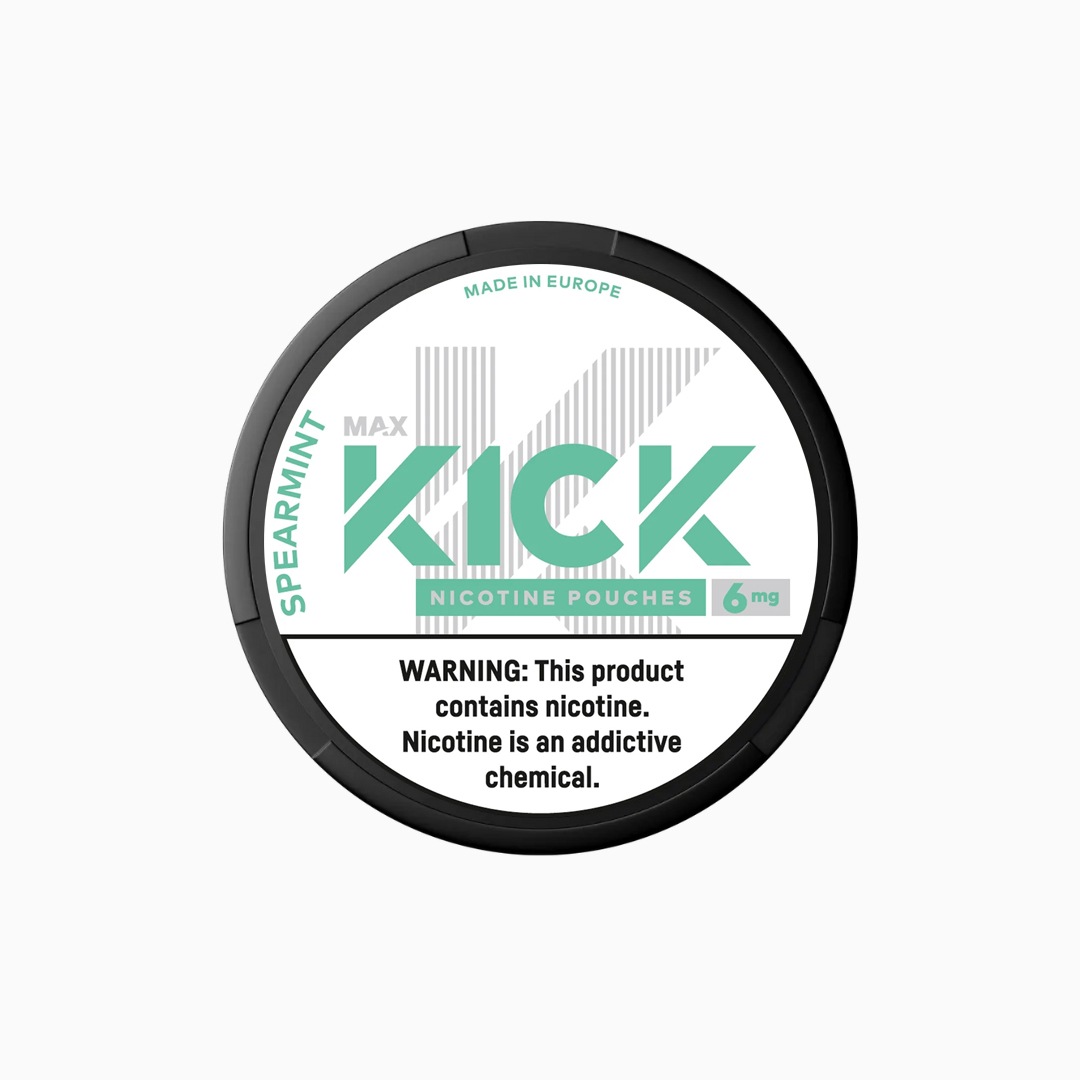 Kick Spearmint nicotine pouches feature an exquisite spearmint flavour in a slim design. Each can contains 20 tobacco-free pouches, delivering a moderate nicotine kick with a refreshing spearmint twist.